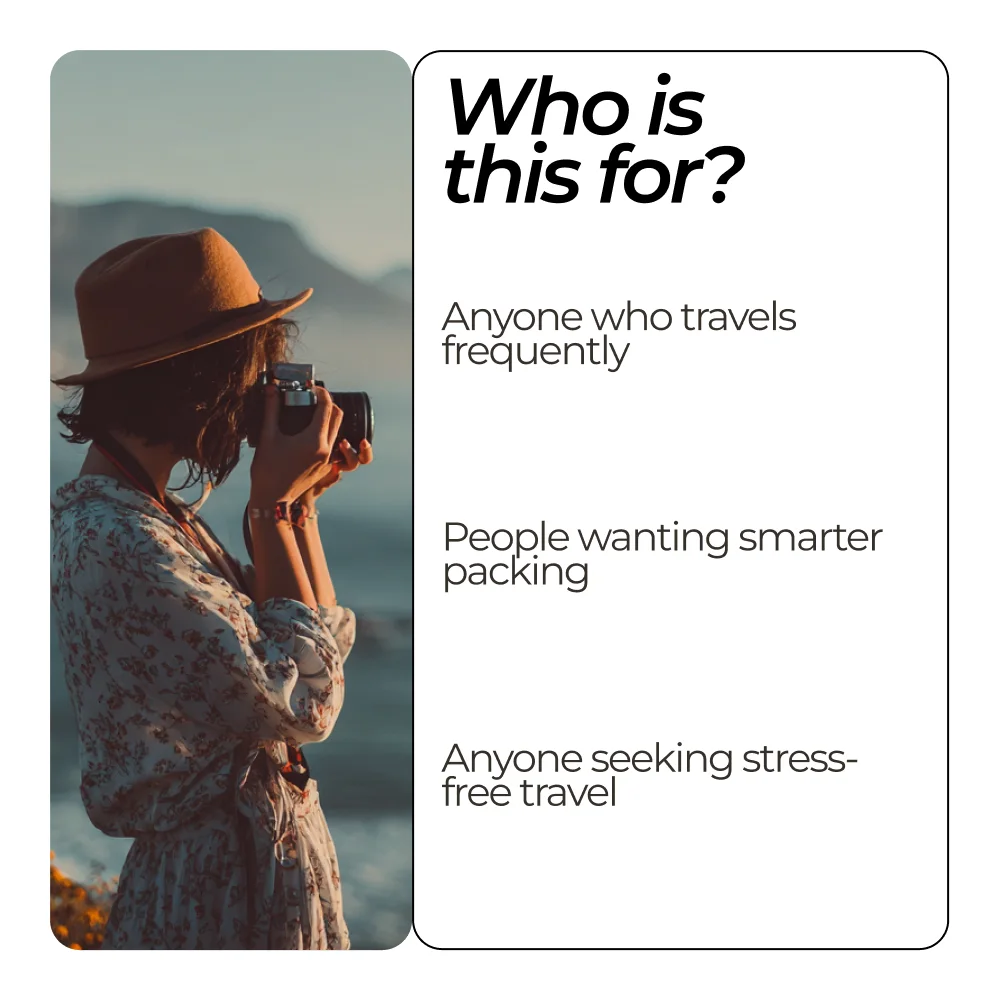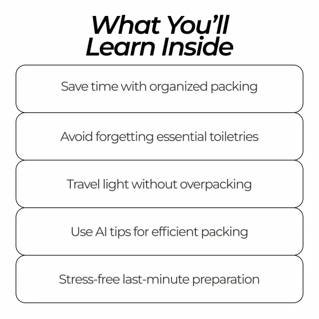 Every traveler needs this guide! The actionable checklist helped me pack with ease, and I’m no longer worried I forgot something. Plus, the AI tips are super helpful for anyone who wants to travel light.