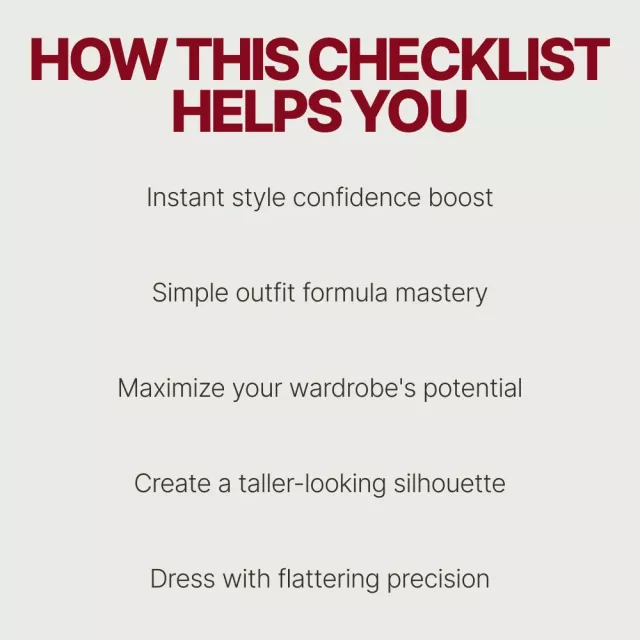 This digital guide distills complex style principles into a simple, actionable checklist you can use every single morning. It’s your personal shortcut to a wardrobe that flatters your figure effortlessly. Whether you’re dressing for work, a date, or a weekend out, this checklist ensures you always know how to create that leg-lengthening magic.