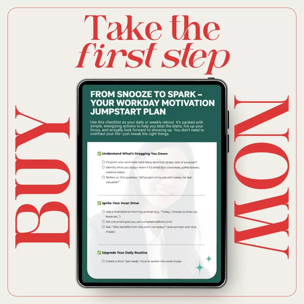 From Snooze to Spark – Your Workday Motivation Jumpstart Plan is a digital download you can print, save on your phone, or revisit anytime your motivation dips. If you’re ready to stop dreading Mondays and finally learn how to get motivated to go to work with clarity and confidence, download your checklist today and start building momentum—one intentional day at a time.