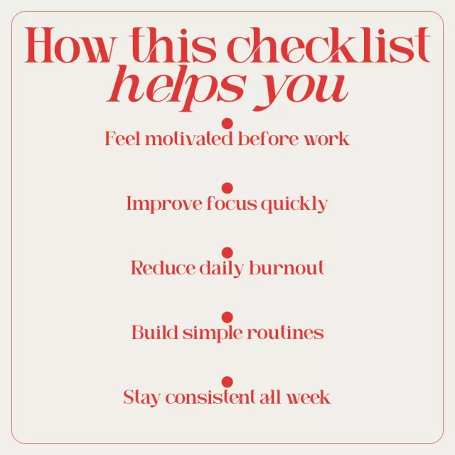 This checklist is perfect for professionals, remote workers, creatives, and anyone feeling stuck, burned out, or disconnected from their work. If you’ve tried motivation hacks that didn’t stick, this grounded, human approach will feel refreshingly doable.