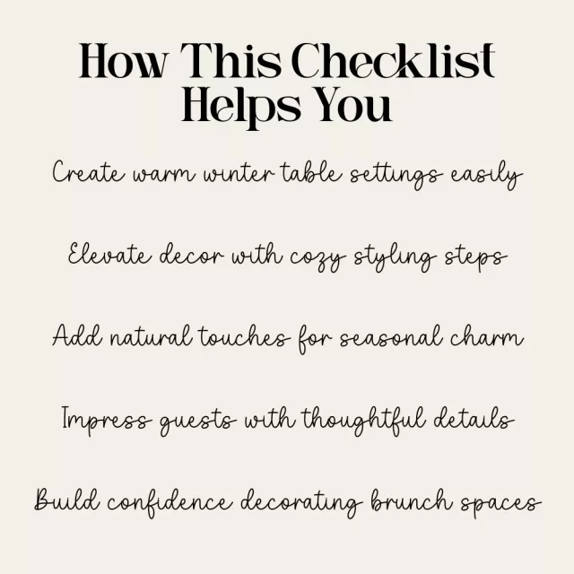 This checklist is perfect for home entertainers, holiday hosts, lifestyle bloggers, content creators, and anyone wanting to learn how to decorate a cozy table for a winter brunch with confidence and creativity.