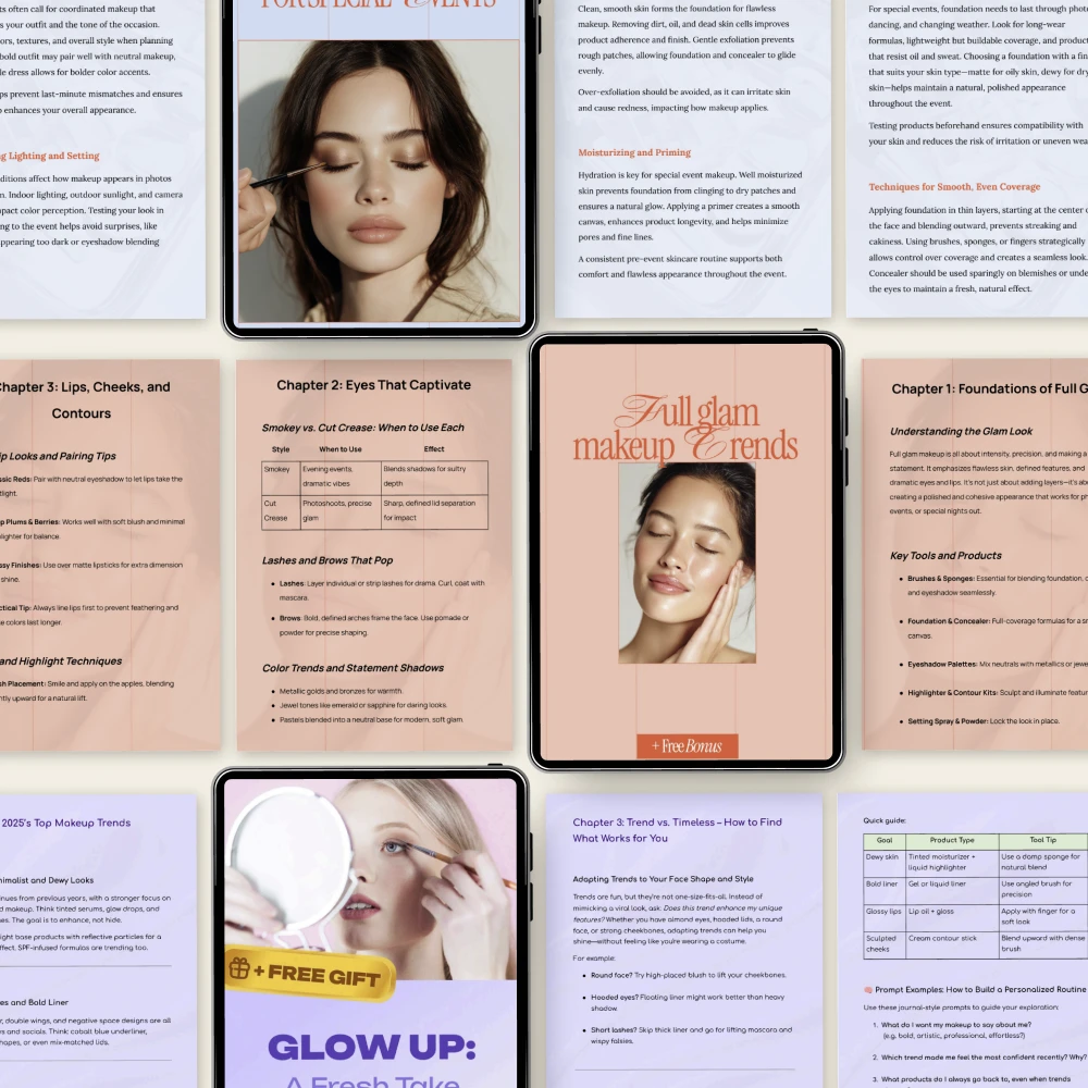 Unlike scattered tutorials or generic guides, this bundle combines technique, inspiration, and trend insight in one cohesive package. It bridges timeless glam methods with today’s most wearable styles, making it both practical and current.