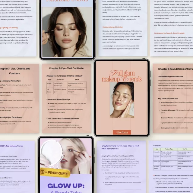 Turn heads, boost confidence, and master your glam game with the Full Glam Makeup Bundle—a must-have 3-in-1 collection of digital beauty resources designed to help you create flawless, trend-forward looks with ease. Whether you’re getting ready for a special event or upgrading your everyday routine, this bundle gives you expert guidance, modern inspiration, and practical tools all in one instant download.