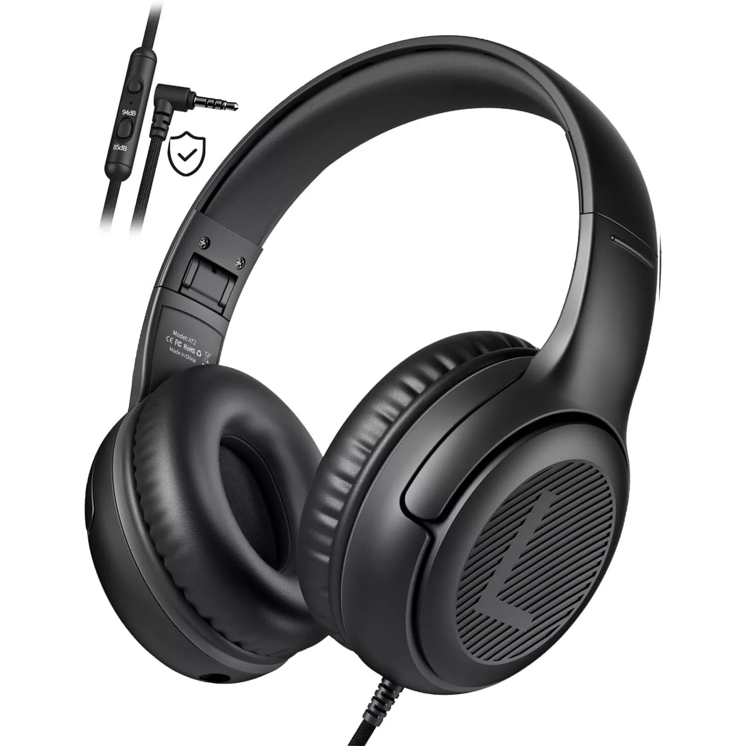 Kids Wired Headphones with Mic, Foldable Over-Ear Design, Safe Volume Control