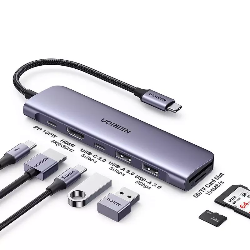 7-in-1 USB-C Hub with 4K HDMI, 100W PD, USB-A & USB-C Ports, SD/TF Card Reader