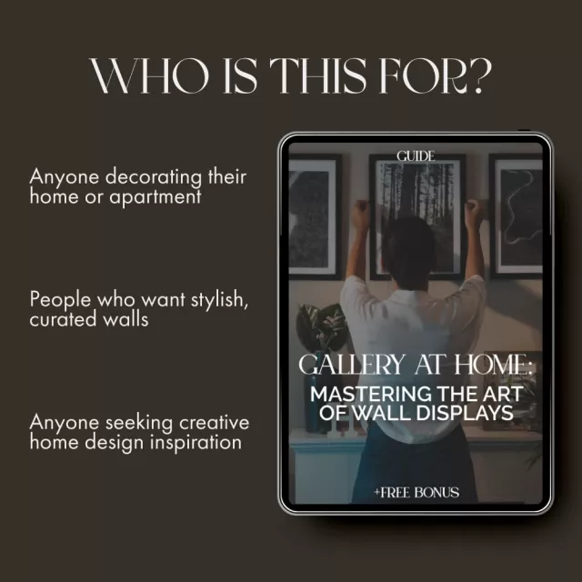 Discover the art of storytelling through your walls with Gallery at Home: Mastering the Art of Wall Displays—a beautifully designed digital guide that teaches you how to arrange artwork and photos on walls with confidence and creativity. Whether you’re a homeowner, decorator, or art enthusiast, this guide empowers you to create stunning, balanced displays that elevate any space. From choosing the perfect wall to curating pieces that tell your story, you’ll learn the step-by-step process to design walls that feel both intentional and inspiring.