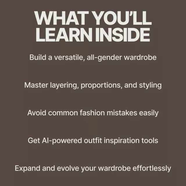 • Styling Gender Neutral Outfits – Learn the art of layering, proportion, fit, and choosing accessories to elevate your look.