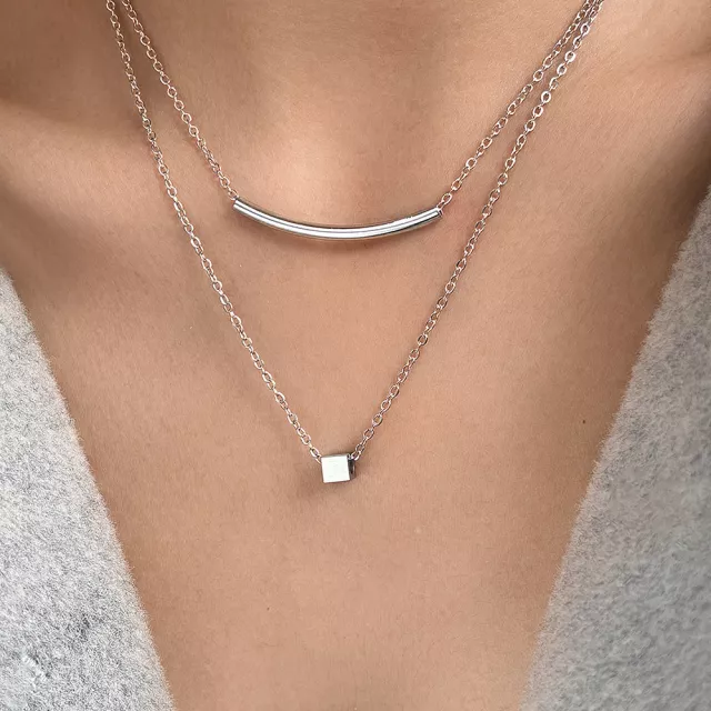 Geometric Square Layered Necklace for Women – Chic Fashion Jewelry