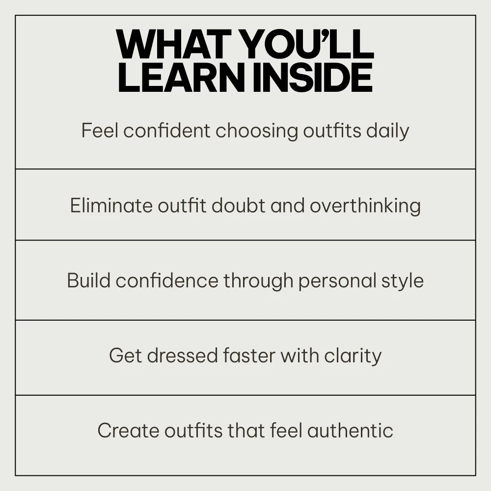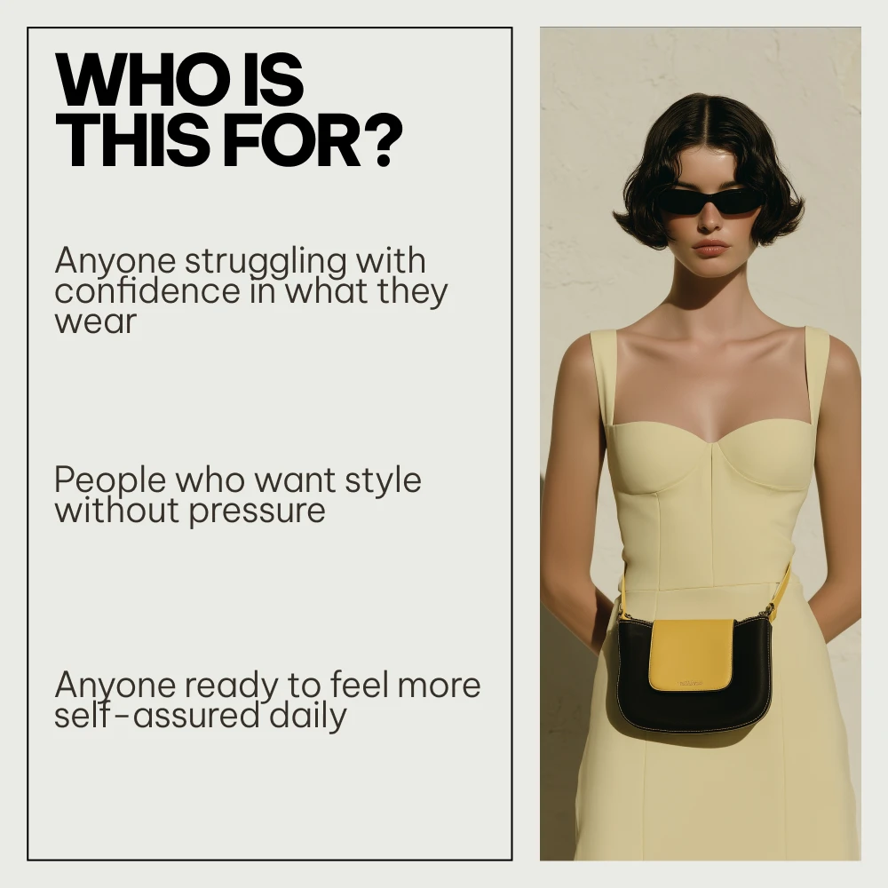 Love how it focuses on confidence first, not just telling me what to wear. The mindset guide has truly transformed the way I approach dressing.