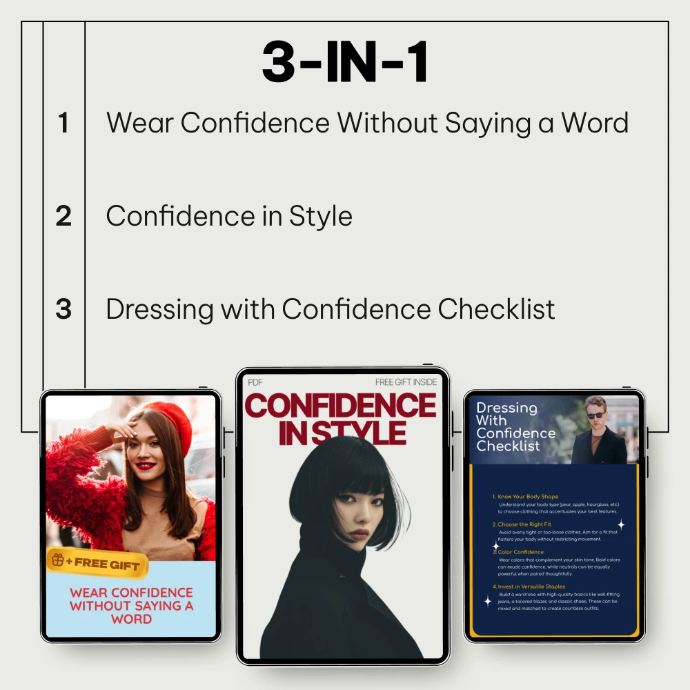 If you want a real transformation in the way you dress, get this 3-in-1 digital bundle ASAP! You'll learn exactly how to feel confident without relying on external validation