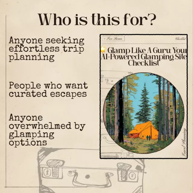 This digital guide goes beyond a simple worksheet. It blends thoughtful trip-planning prompts with practical tech insights, helping you use AI like a travel expert. Unlike other resources that leave you guessing, this checklist gives you structure, confidence, and a clear path to discovering the glamping experience that truly fits your personality and needs.