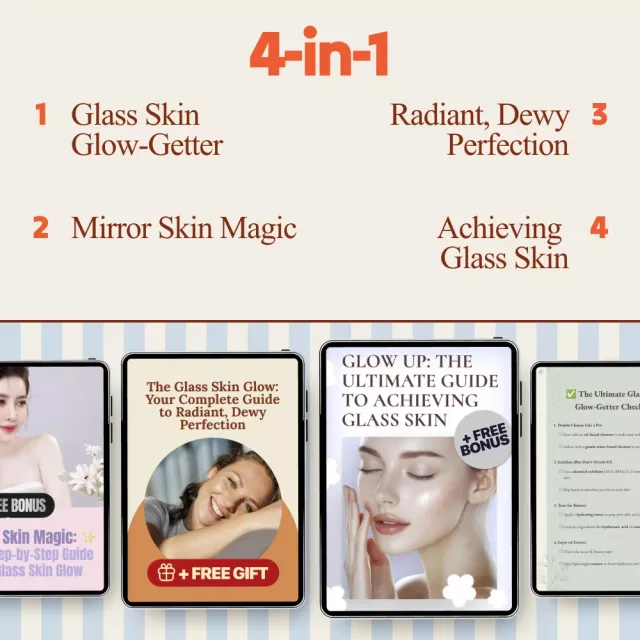 If you’ve been dreaming of smooth, luminous, camera-ready skin, the Glass Skin Perfection Bundle is your all-in-one digital solution. This carefully curated 4-in-1 bundle brings together guides, eBooks, and checklists designed to simplify the journey to glass skin. Instead of guessing what works, you’ll follow clear, proven steps that help you build a routine focused on hydration, glow, and long-term skin confidence.