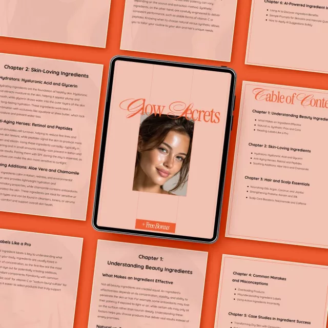 Glow Secrets – Beauty Ingredients Guide eBook, Skincare & Haircare Digital Download, Ingredient Education, AI-Powered Beauty Guide