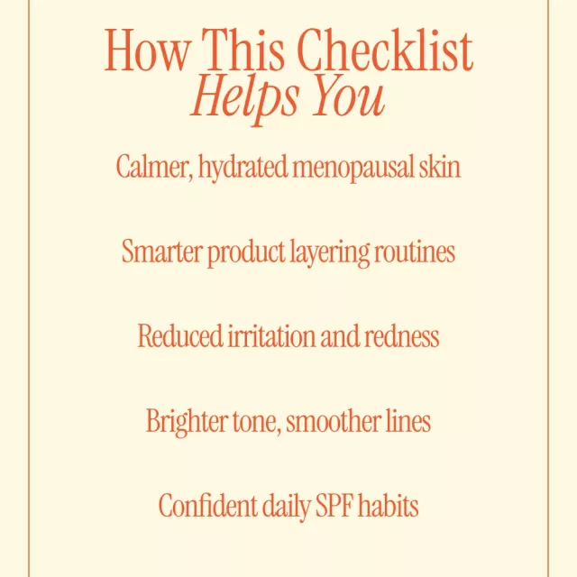 This checklist is perfect for women in perimenopause or menopause who want healthier, more comfortable skin without complicated routines. It’s ideal if you’re tired of trial-and-error, confused by skincare labels, or simply want a smarter, calmer approach to beauty.