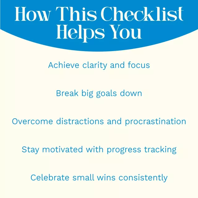 • Break It Down: Divide your big goal into smaller, manageable steps and track progress along the way.