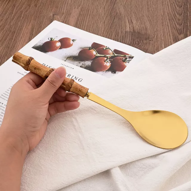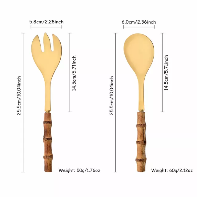 Each spork is made from high-quality stainless steel that resists rust and wear, ensuring long-lasting use. The bamboo handles offer a comfortable grip and add a warm, natural aesthetic that complements any table setting. With a polished gold finish, these utensils shine bright for special occasions or everyday meals.