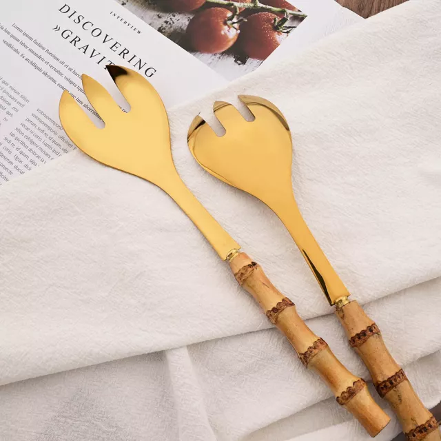 Gold Long Handle Serving Spork Set – Stainless Steel & Bamboo Cutlery