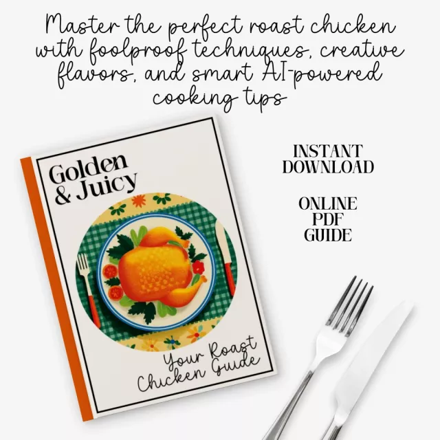 If you’ve ever wished your roast chicken could come out perfectly golden, irresistibly juicy, and bursting with flavor every single time, this guide is for you. Golden & Juicy – Your Roast Chicken Guide is a beautifully crafted digital download designed to help home cooks of all levels master the roast chicken recipe they’ve always dreamed of. With step-by-step instructions, chef-inspired techniques, and smart AI-enhanced tips, this guide transforms an everyday meal into something unforgettable.