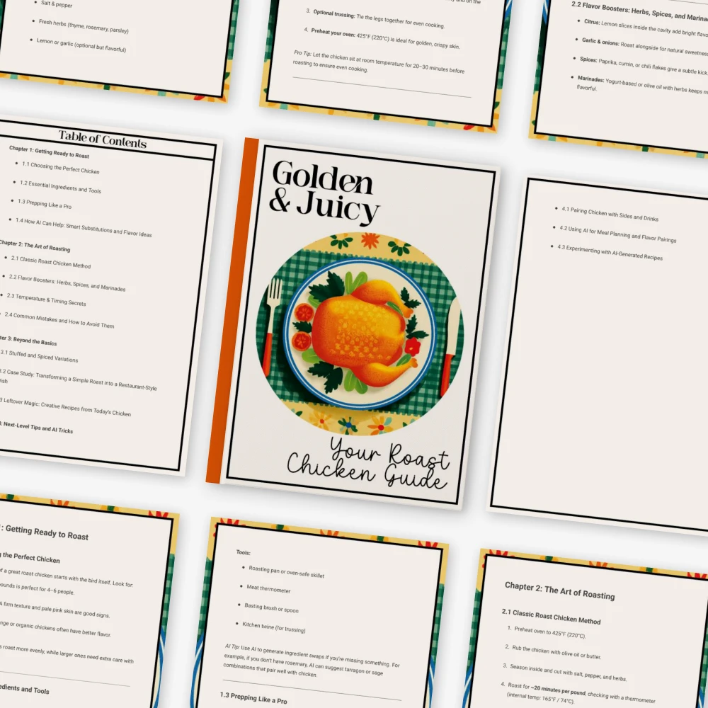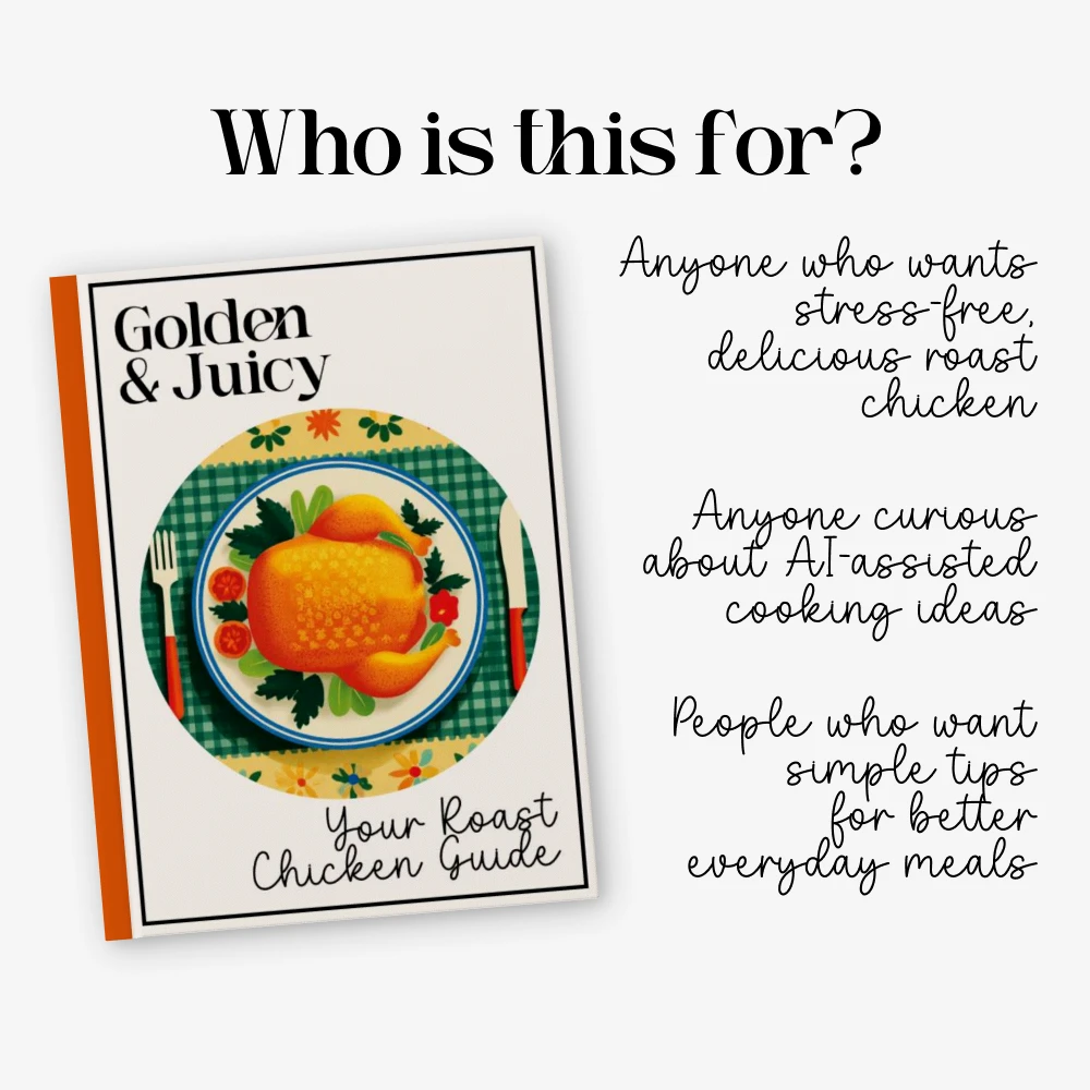 Unlike generic cooking guides, this digital download blends trusted culinary techniques with modern AI tools to help you personalize flavors, plan meals, and get creative with your roast chicken recipe. It’s practical, approachable, and designed to spark joy in your kitchen.