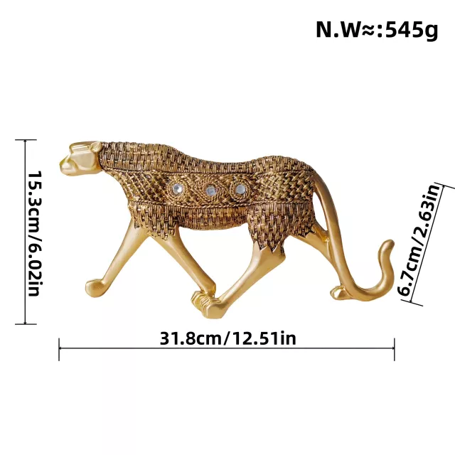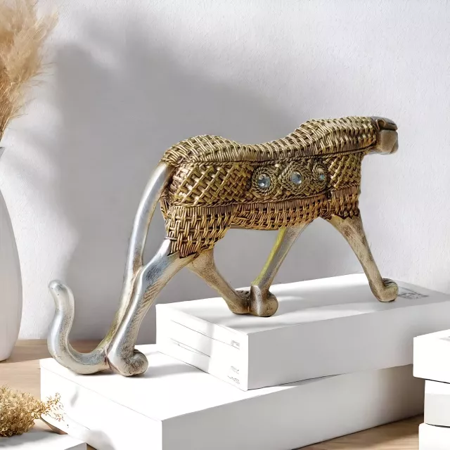 Unlike ordinary figurines, this leopard sculpture combines artistry, craftsmanship, and symbolism. Its golden braided texture sets it apart, turning it into more than just a decorative item—it’s an emblem of sophistication and power. The golden finish reflects light beautifully, enhancing the ambiance of any room while making your décor truly stand out.