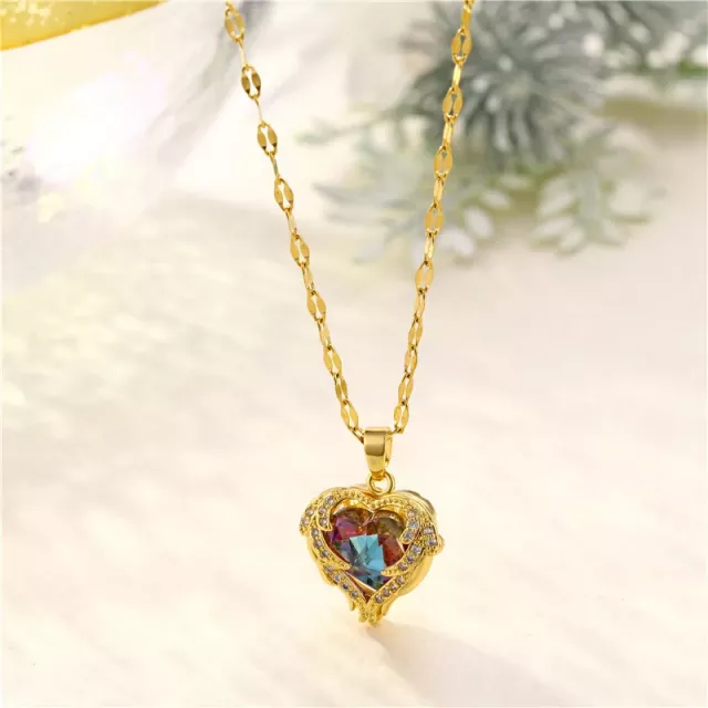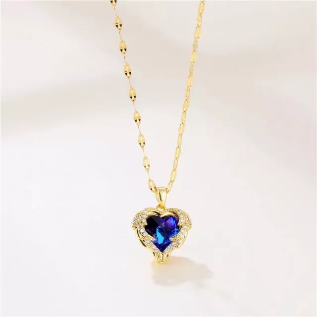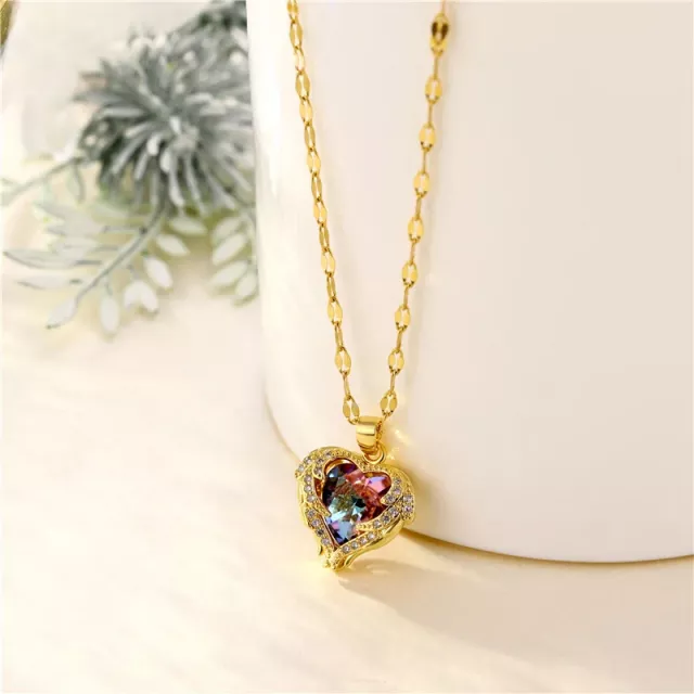 This necklace is not just an accessory; it’s a statement piece. The heart-shaped gemstone is meticulously crafted to catch the light, adding a sparkling accent to your ensemble. The titanium steel construction ensures that this necklace will withstand the test of time, retaining its golden luster and intricate detailing.