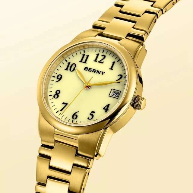 This golden ladies’ quartz watch is more than just a timekeeper — it’s a statement of elegance and reliability. With its luminous dial, durable build, and timeless design, it’s an essential accessory for women who appreciate both style and function. Step out with confidence and let this watch shine on your wrist.