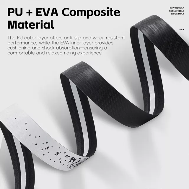 Crafted from high-grade EVA material with a PU outer layer, this handlebar tape offers excellent wear-resistance and anti-slip properties. The 0.12-inch thickness provides optimal shock absorption, reducing hand fatigue and increasing control on rough terrain. Lightweight yet sturdy, it’s built to handle countless rides without losing its quality or grip.