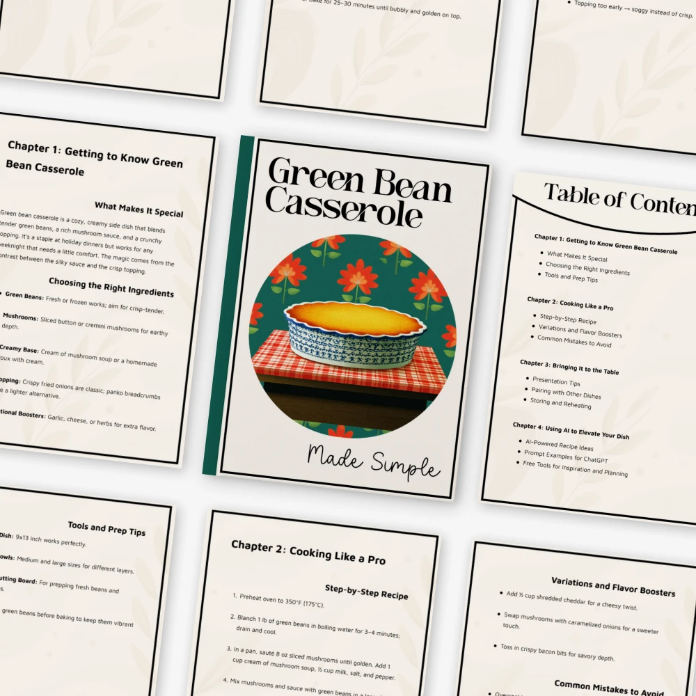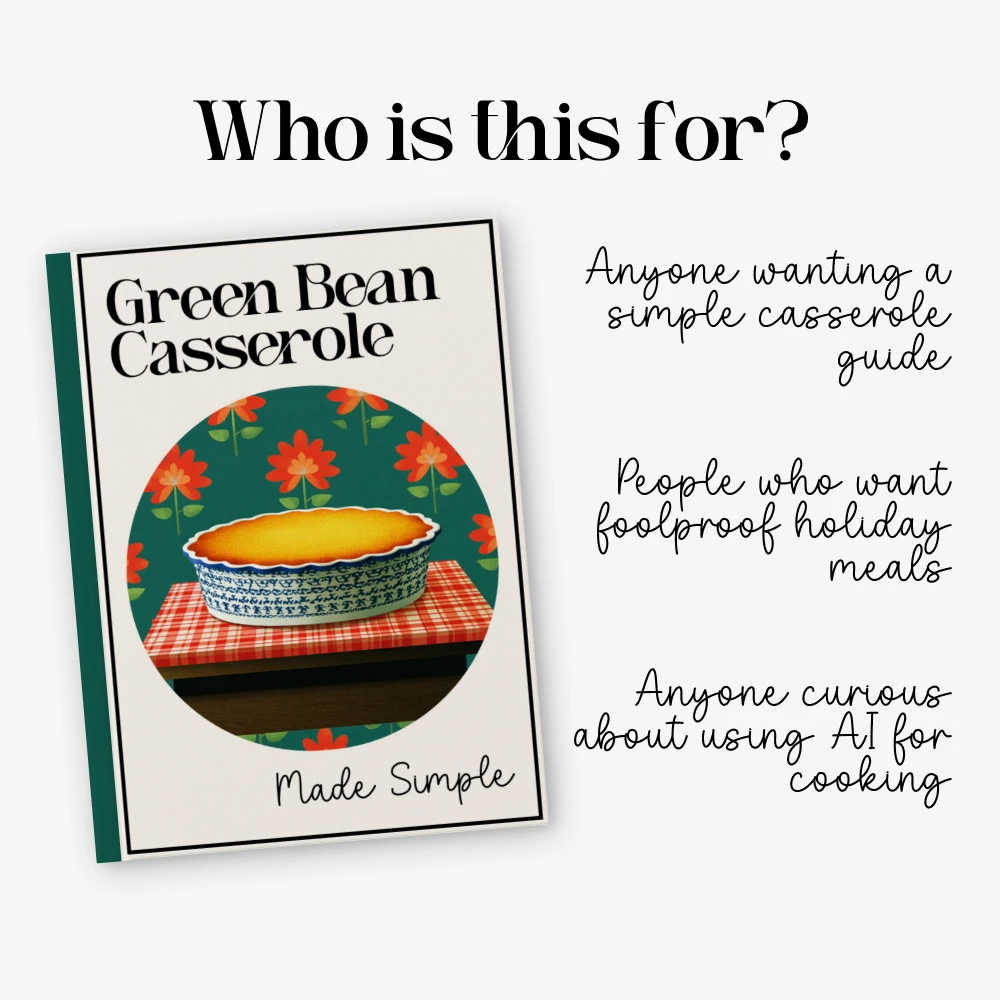 This resource goes beyond basic recipes by combining culinary know-how with AI-enhanced creativity. You’ll not only learn how to make a reliable green bean casserole—you’ll also gain the tools to personalize, innovate, and elevate it using ChatGPT prompts and free online tools. It’s an approachable, inspiring, and beginner-friendly digital guide designed to help you cook smarter and tastier.