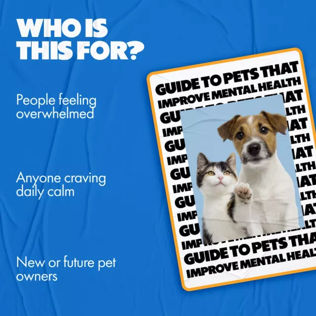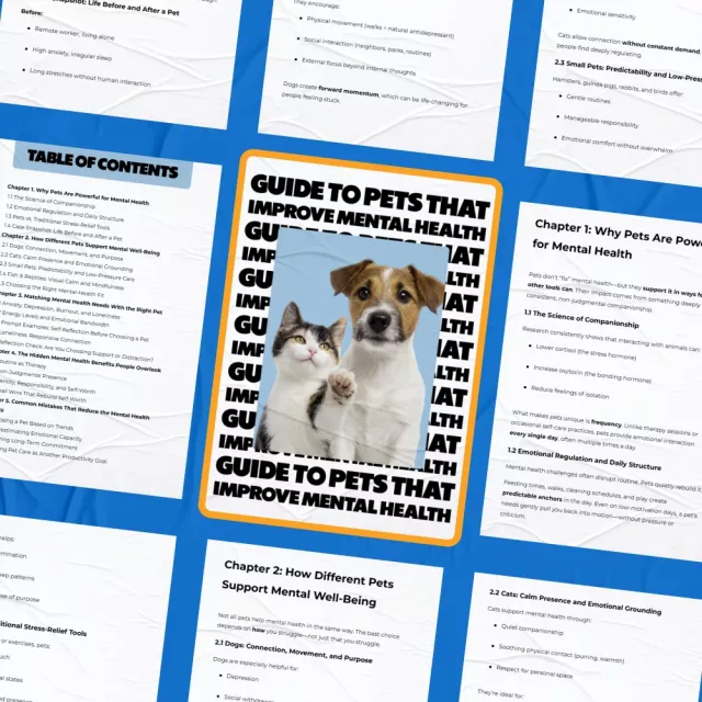 This eBook is ideal for adults exploring pets as emotional support, people managing anxiety, depression, burnout, or loneliness, and anyone who wants a realistic, compassionate look at pets that improve mental health — without pressure or unrealistic promises.