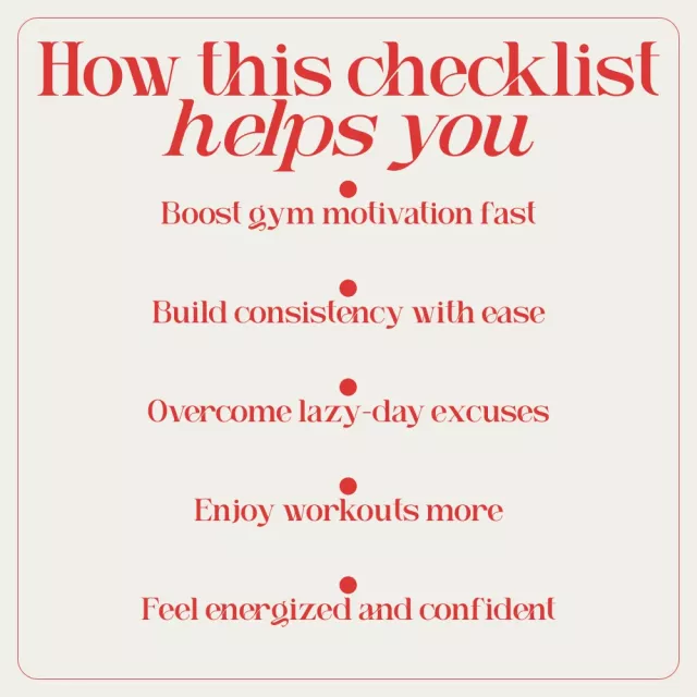 This checklist is perfect for beginners, inconsistent gym-goers, or anyone stuck in the loop of asking how to motivate myself for gym without finding a solution that sticks. It’s especially helpful if you want structure without pressure.