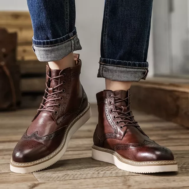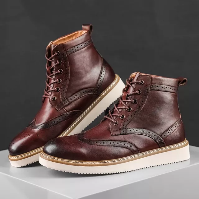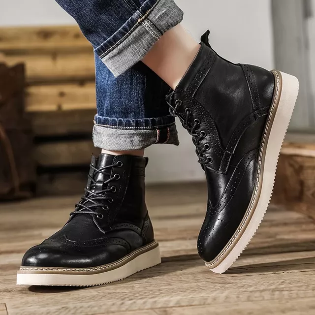 These boots stand out for their combination of classic design and practical features. Handmade craftsmanship ensures each pair is unique, with attention to detail in every stitch. The vintage British brogue pattern adds elegance, while the motorcycle boot styling provides a rugged edge. Perfect for cooler seasons, these boots keep your feet warm and supported, whether walking through city streets or exploring the outdoors. They are the ultimate choice for men seeking style, comfort, and durability in one versatile boot.