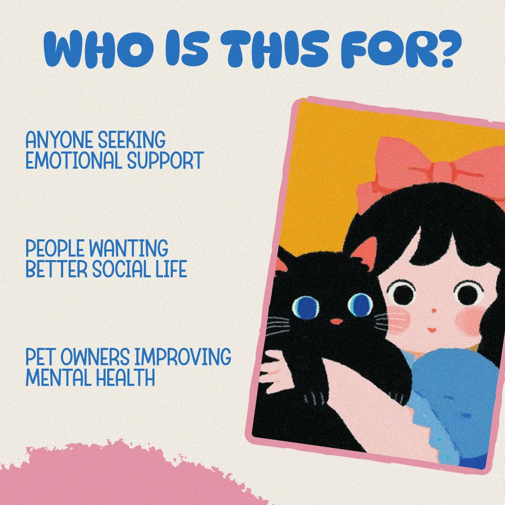 This toolkit is perfect for anyone who owns a pet or is considering adopting one. It’s ideal for individuals seeking mental health improvement, reducing stress and anxiety, or simply enhancing their daily life. If you’re looking to strengthen your bond with your pet and understand how they can improve your social life and well-being, this bundle is for you.