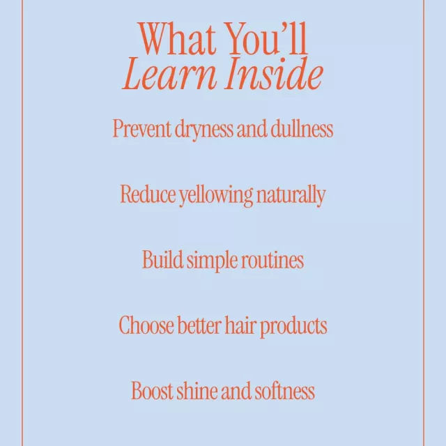This ebook walks you step by step through the science, care, and daily habits that support beautiful gray hair. Inside, you’ll find: