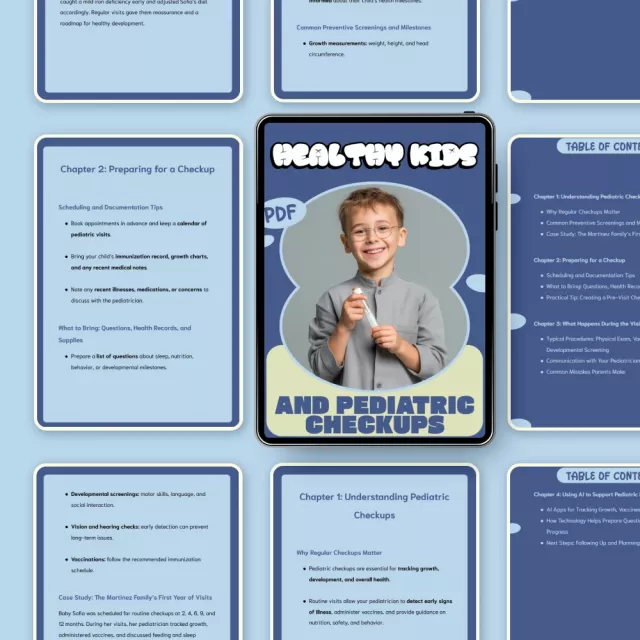 Taking care of your child’s health doesn’t have to feel overwhelming. Healthy Kids and Pediatric Checkups is a practical, easy-to-follow digital guide designed to help parents understand, prepare for, and confidently navigate pediatric checkups. Whether you’re a first-time parent or managing ongoing care, this resource gives you clarity, structure, and peace of mind—before, during, and after every visit. With real-life examples and modern tools, it bridges the gap between medical appointments and everyday parenting.