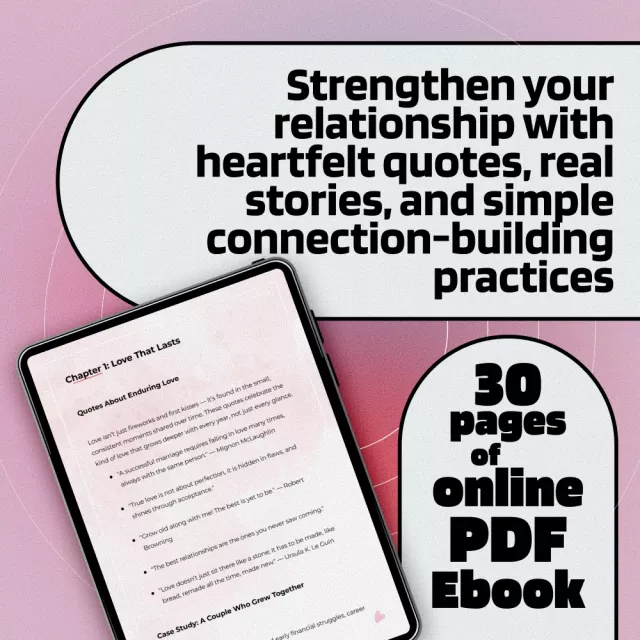 Unlike other digital quote books, Hearts in Harmony is designed as a relationship-building tool, not just a collection of phrases. With its blend of inspirational relationship quotes, storytelling, interactive prompts, and practical advice, this eBook empowers you to turn words into action. It’s ideal for couples who want more depth—not just cute messages, but meaningful growth.