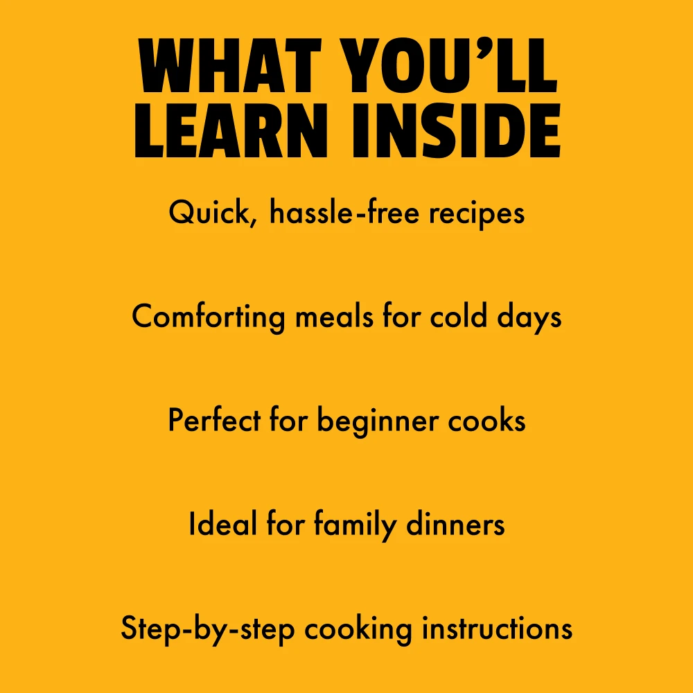 This bundle is for anyone who loves the idea of indulging in the best warm meals for winter. Whether you’re looking to impress guests, treat your family to comforting meals, or simply enjoy a cozy night in, the Heartwarming Meals Pack for Cold Days is perfect for you. It’s ideal for home cooks who want to create tasty, warming dishes with minimal fuss, as well as those who are new to cooking and want easy, step-by-step guidance.