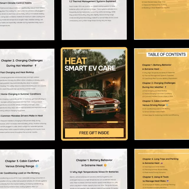 • Chapter 5: Using AI Tools to Manage Heat Risks 🤖 – Utilize AI prompts for battery and range planning, AI-assisted charging decisions, and AI-based travel optimization.