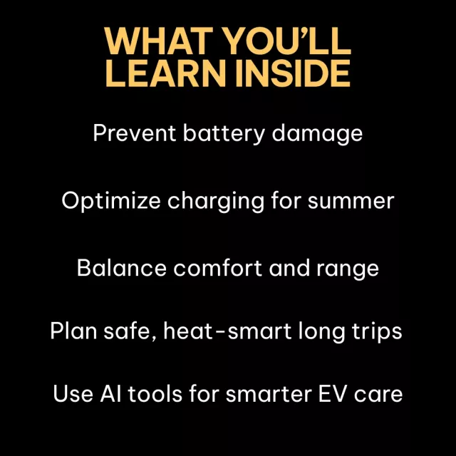 This digital resource is perfect for EV owners who want to maximize their vehicle’s lifespan and performance during summer months. Unlike other generic EV care guides, Heat Smart EV Care combines technical knowledge, practical tips, real-world examples, and AI-based solutions tailored for hot climates. It’s your complete toolkit for smart, heat-proof EV management.