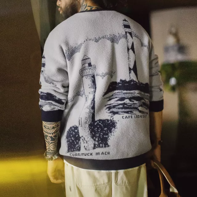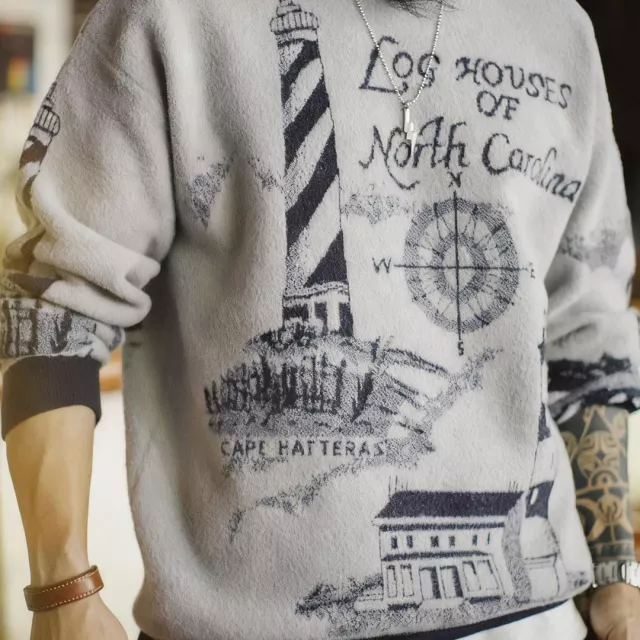 This sweater stands out because it blends reliable warmth with a refined vintage aesthetic. The nautical lighthouse motif gives it personality, while the soft knit and relaxed fit ensure maximum comfort. It’s best used during transitional seasons and winter, offering an easy layering option for daily outings, cozy indoor moments, and outdoor adventures. With its carefully chosen materials and thoughtful design, it becomes more than just clothing—it becomes a wardrobe essential that brings warmth, style, and confidence to every day.