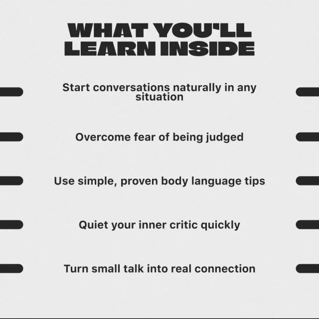 Written in a warm, relatable tone, this downloadable guide breaks down the art of conversation into real, actionable steps. You’ll learn how to start chats without feeling fake, quiet that annoying inner critic, and move past small talk to real connection. No fluff. Just smart strategies you can actually use.