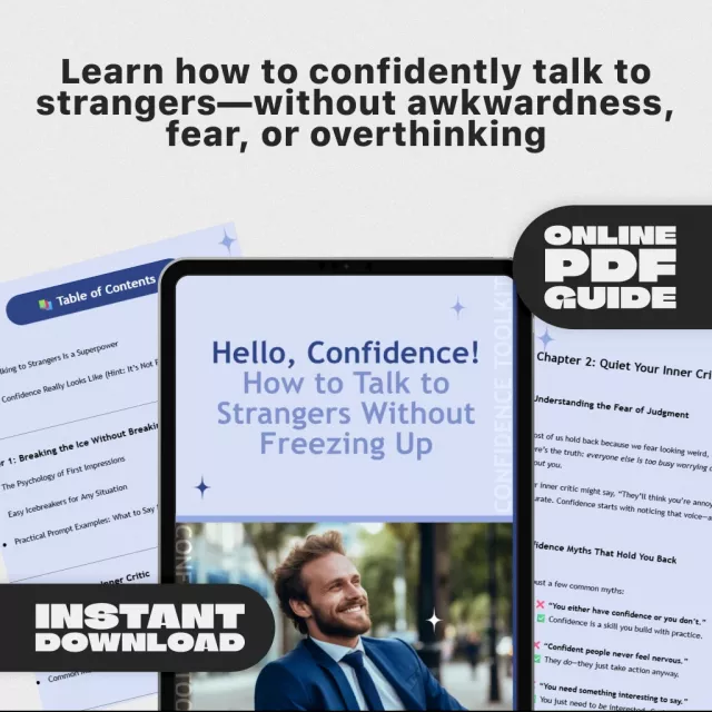 Say goodbye to awkward silences and social anxiety with Hello, Confidence! How to Talk to Strangers Without Freezing Up—a practical, encouraging digital guide designed to help you feel at ease in any conversation. Whether you’re networking, making new friends, or navigating daily social situations, this guide offers a simple, empowering roadmap for how to be more confident talking to strangers. It’s not about being perfect—it’s about showing up as your most authentic self.