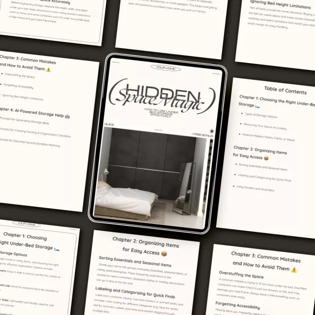 Transform your bedroom into a clutter-free sanctuary with Hidden Space Magic — the ultimate digital guide for making the most of your under-bed storage. Whether you live in a cozy apartment or simply want to maximize every inch of your home, this downloadable eBook is packed with expert tips, clever strategies, and AI-powered ideas that will help you organize smarter, not harder. It’s not just a guide — it’s your new go-to manual for space efficiency and peace of mind.