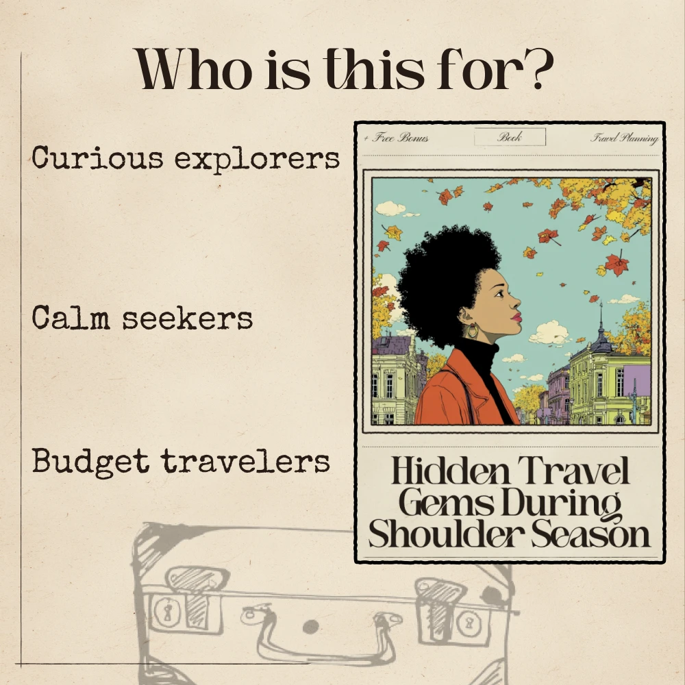 Uncover the world’s best-kept secrets with Hidden Travel Gems During Shoulder Season — the ultimate guide for travelers who want breathtaking adventures without the crowds or high costs. This digital eBook shows you how to use ai to find destinations in shoulder season for smoother, smarter, and more personalized trips. Whether you’re dreaming of serene coastlines, charming mountain towns, or cultural festivals without the chaos, this guide helps you plan like a pro and travel like an insider.