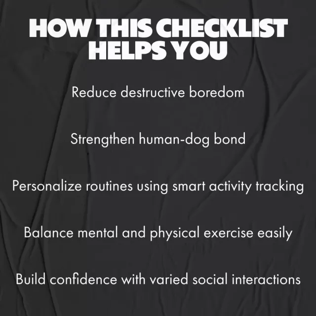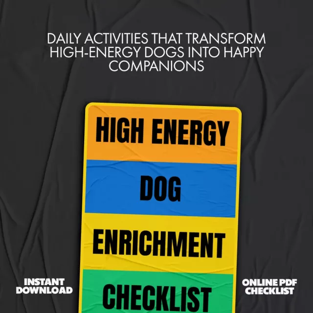 High Energy Dog Enrichment Checklist | Digital Download Guide for Mental Stimulation, Physical Exercise, Interactive Play with Humans, Social Interaction & AI for Smart Enrichment