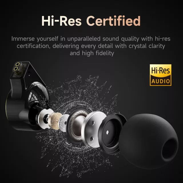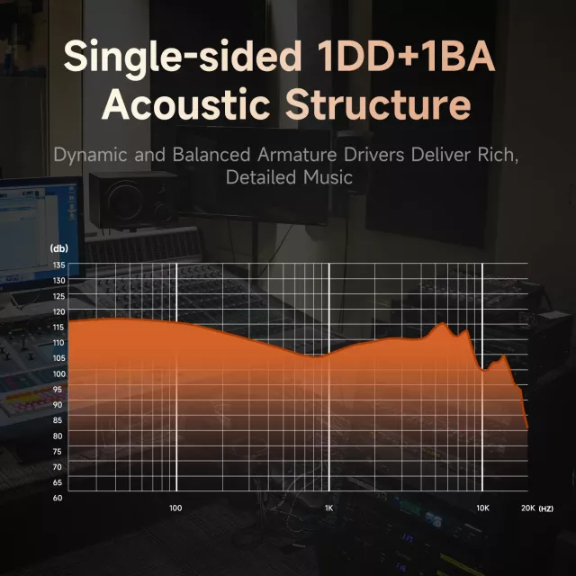 • Hybrid Driver System: Combines a 0.39-inch dynamic driver with a 0.2-inch balanced armature for precise audio and deep bass.