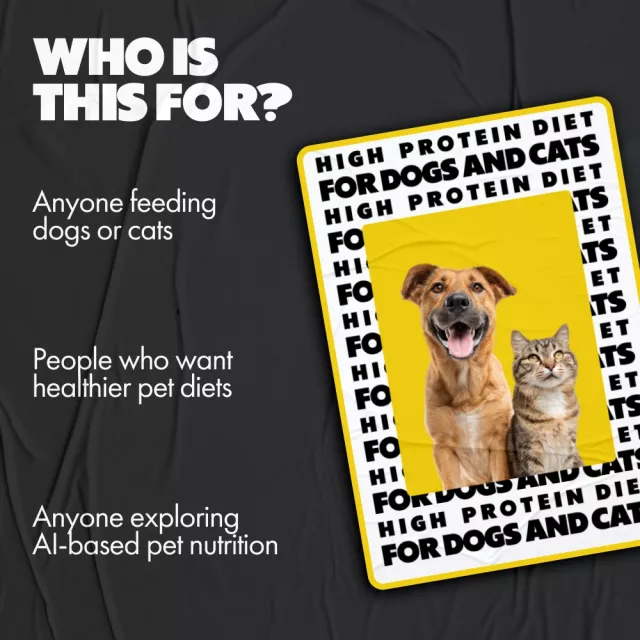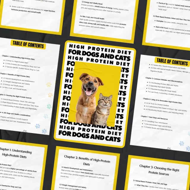 Give your dogs and cats the nutrition they deserve with High-Protein Diet for Dogs and Cats, a comprehensive and easy-to-follow ebook designed for modern pet owners. This digital guide breaks down the science behind protein-rich diets and explains exactly how the right balance can support strength, energy, and long-term wellness. Whether you are new to pet nutrition or looking to optimize your pet’s current diet, this ebook delivers practical guidance grounded in real-world application and emerging AI tools.
