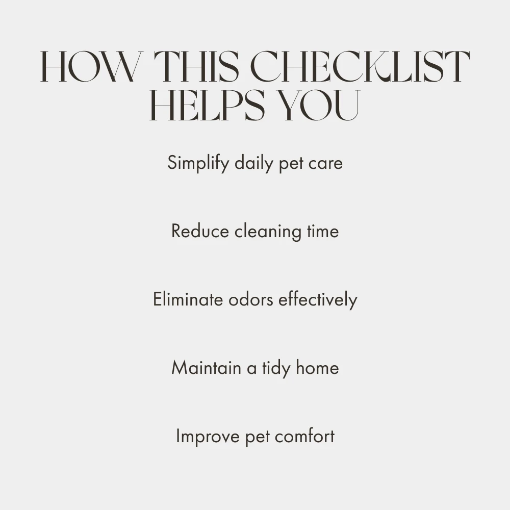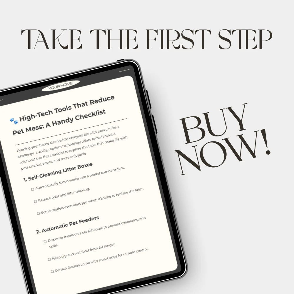 Say goodbye to scattered fur, unpleasant odors, and endless sweeping. With this simple, organized checklist, you’ll confidently choose the best high-tech tools that reduce pet mess and take your home from cluttered to clean in no time. Download your instant digital checklist now and start living your most effortless pet-friendly life!