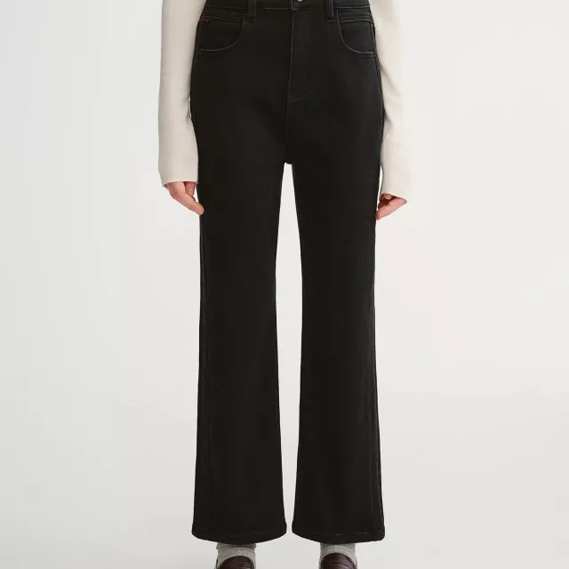 High Waist Straight Leg Women’s Jeans with Fleece Lining for Winter