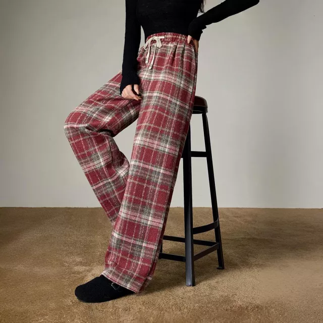 High-Waisted Plaid Wide-Leg Winter Trousers for Women
