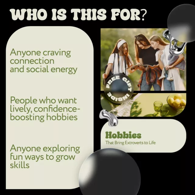 This ebook is ideal for extroverts who feel bored, overstretched, or unsure which hobbies are worth their time. It’s perfect for students, professionals, creatives, and anyone who wants to reconnect with activities that feel alive, social, and purposeful.